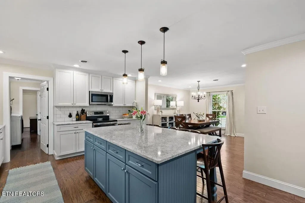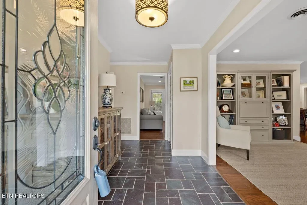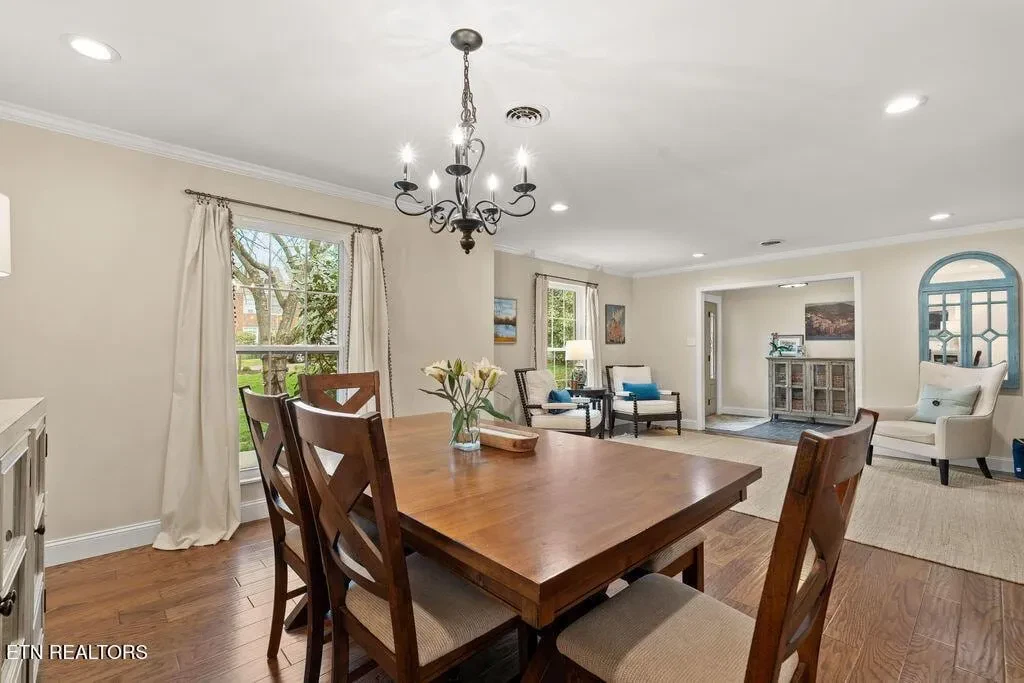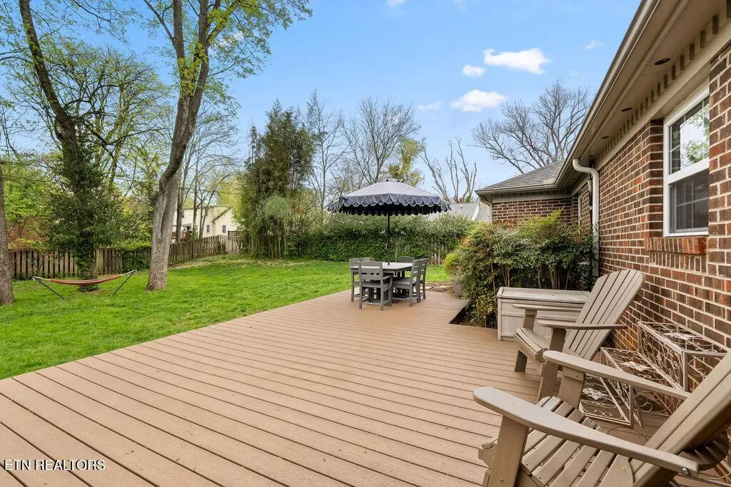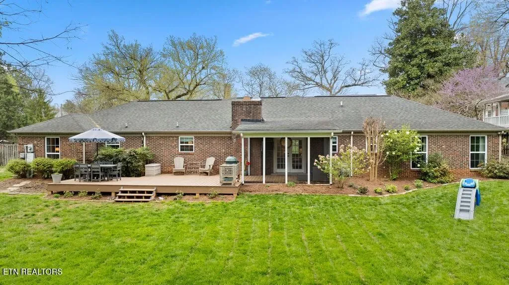 Nestled in the heart of picturesque Sequoyah Hills with easy access to the trails along Cherokee Boulevard, Sequoyah Park and Knoxville’s extensive greenway system, the Plaid Apron, Sequoyah Elementary School & the library, and just minutes from Downtown and the University of Tennessee, this beautifully updated one-level home exudes warmth, character, and relaxed elegance. While originally constructed in 1977, this home has been impressively renovated with both style and function in mind. Step into a sunny foyer that welcomes you into light-filled living and dining areas. Continue into a bright, open kitchen that features a large central island and plenty of storage. This gathering space flows seamlessly into a warm family room, complete with a wood burning fireplace. Pass through French doors and onto to a roomy screened porch outfitted with a wall-mounted television and new Trex deck. With ample room for lounging, grilling and dining, there is plenty of space to enjoy outdoor living. The large flat backyard, with its lush greenery and mature trees, as well as providing plenty of space for playing and relaxing, evokes a sense of peace and serenity. Back inside, you’ll find that each bedroom features large windows and generous closets. Bathrooms are bright and modern. In addition to the three spacious bedrooms, you’ll find a flexible bonus room just beyond the kitchen and laundry area that could serve as a small fourth bedroom or home office. The attached 2-car garage offers convenience and additional storage. Recent updates since 2024 include a new large Trex deck, updated gutters/drainage system, new garage door, new interior doors, new shelving system in the laundry room and a new LG dishwasher. Approx. size per appraiser is an estimate only and is not guaranteed. In addition to the aprx 2050sf interior, there is an aprx 135sf screened porch, aprx 392sf composite deck and aprx 484sf attached 2-car garage. Buyer to verify size and taxes, which are subject to change.