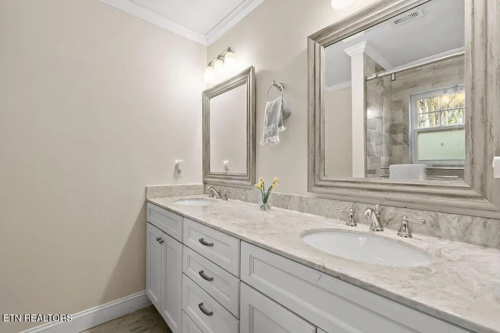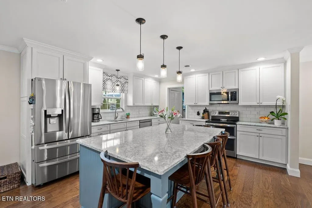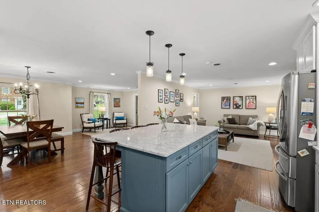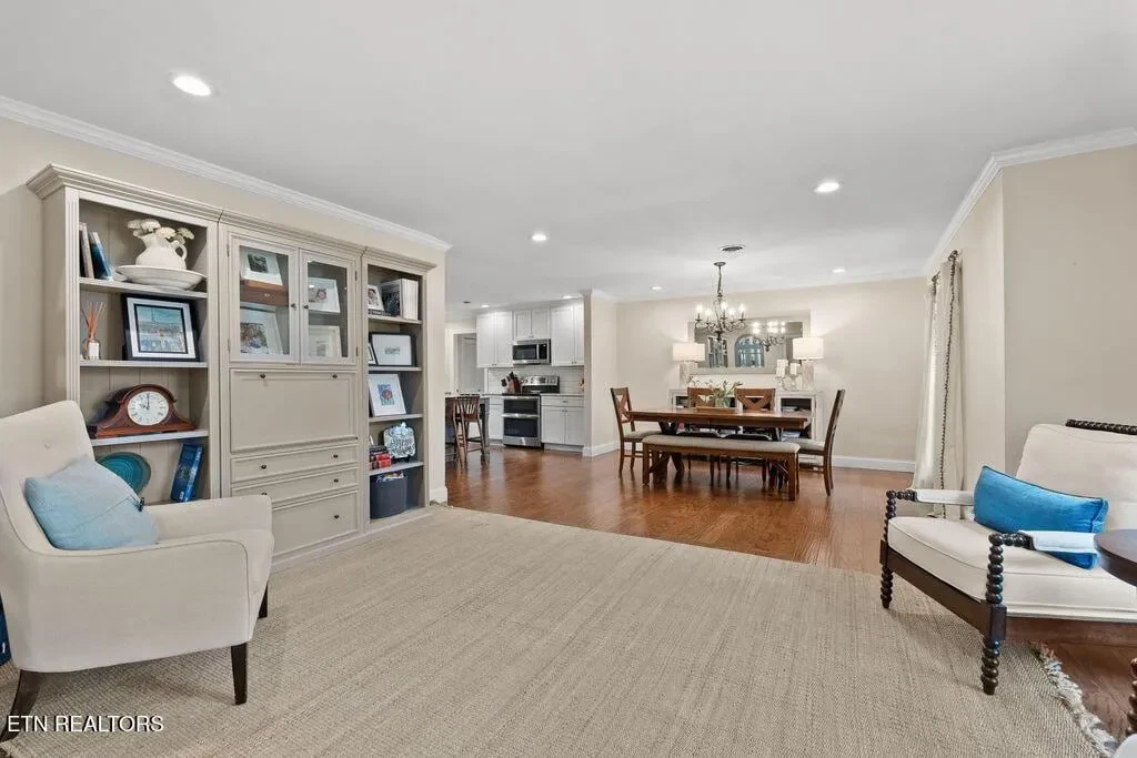 Nestled in the heart of picturesque Sequoyah Hills with easy access to the trails along Cherokee Boulevard, Sequoyah Park and Knoxville’s extensive greenway system, the Plaid Apron, Sequoyah Elementary School & the library, and just minutes from Downtown and the University of Tennessee, this beautifully updated one-level home exudes warmth, character, and relaxed elegance. While originally constructed in 1977, this home has been impressively renovated with both style and function in mind. Step into a sunny foyer that welcomes you into light-filled living and dining areas. Continue into a bright, open kitchen that features a large central island and plenty of storage. This gathering space flows seamlessly into a warm family room, complete with a wood burning fireplace. Pass through French doors and onto to a roomy screened porch outfitted with a wall-mounted television and new Trex deck. With ample room for lounging, grilling and dining, there is plenty of space to enjoy outdoor living. The large flat backyard, with its lush greenery and mature trees, as well as providing plenty of space for playing and relaxing, evokes a sense of peace and serenity. Back inside, you’ll find that each bedroom features large windows and generous closets. Bathrooms are bright and modern. In addition to the three spacious bedrooms, you’ll find a flexible bonus room just beyond the kitchen and laundry area that could serve as a small fourth bedroom or home office. The attached 2-car garage offers convenience and additional storage. Recent updates since 2024 include a new large Trex deck, updated gutters/drainage system, new garage door, new interior doors, new shelving system in the laundry room and a new LG dishwasher. Approx. size per appraiser is an estimate only and is not guaranteed. In addition to the aprx 2050sf interior, there is an aprx 135sf screened porch, aprx 392sf composite deck and aprx 484sf attached 2-car garage. Buyer to verify size and taxes, which are subject to change.
