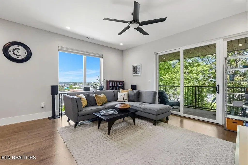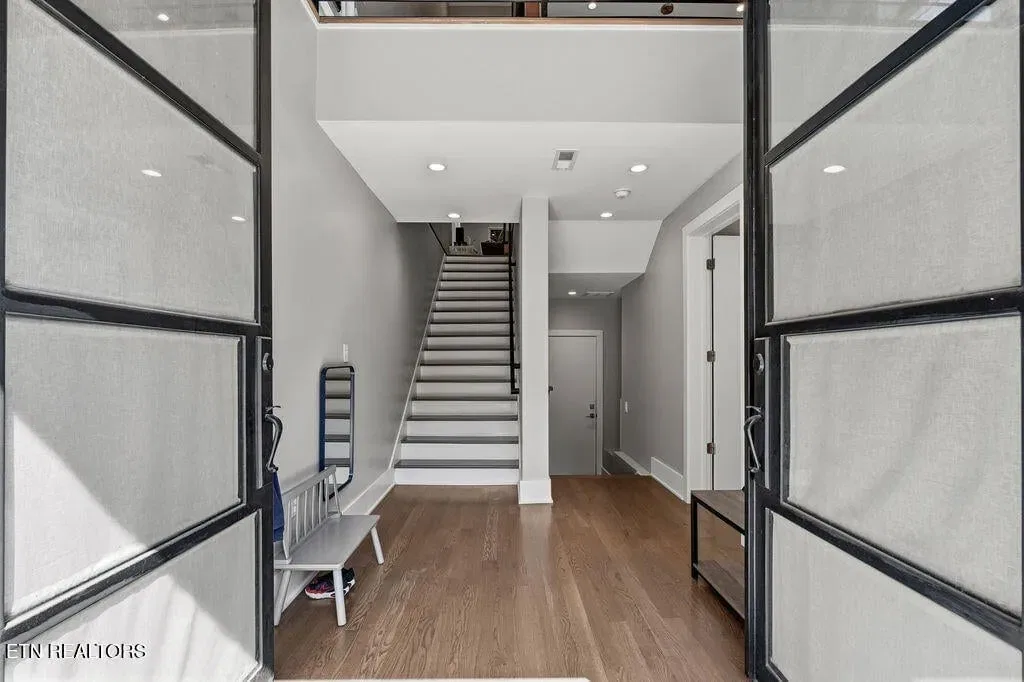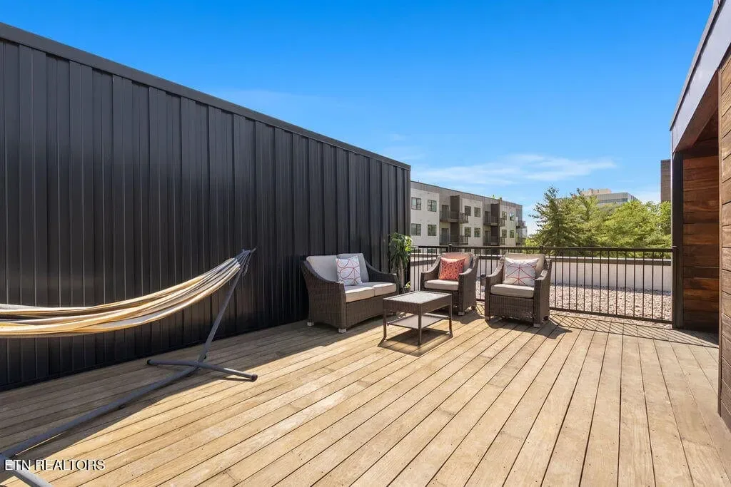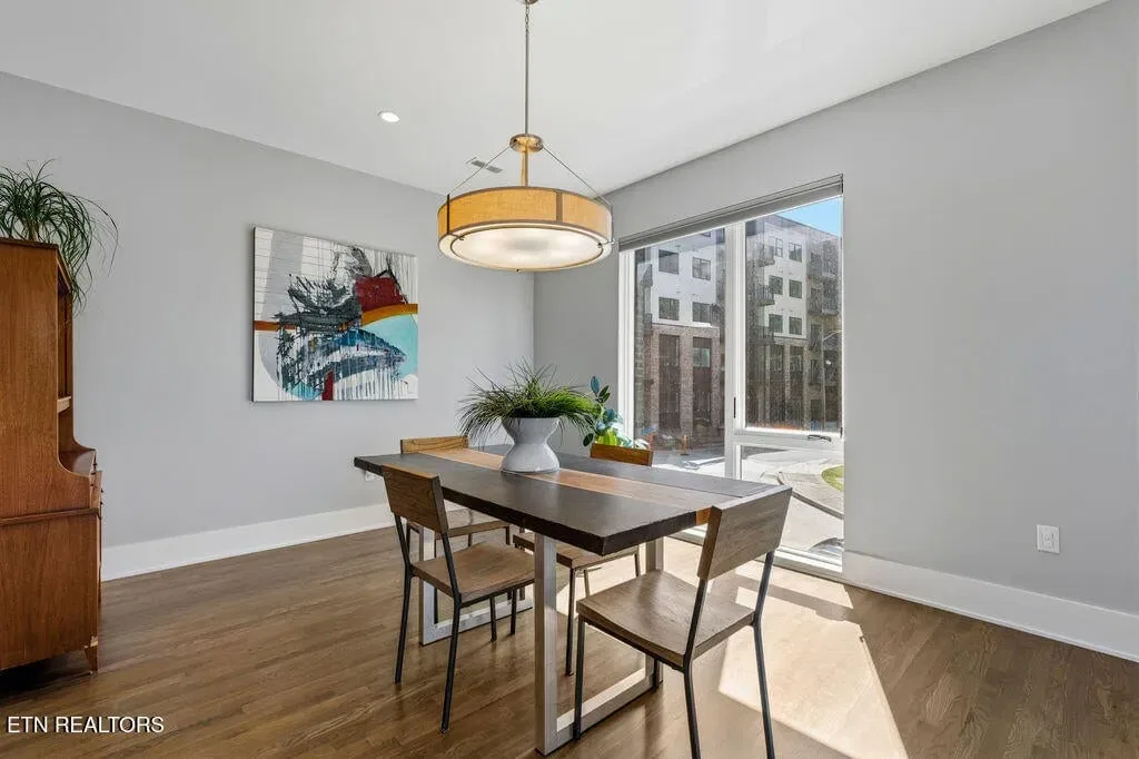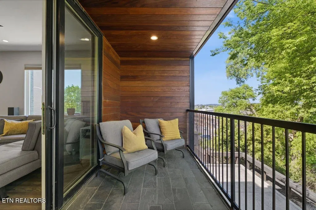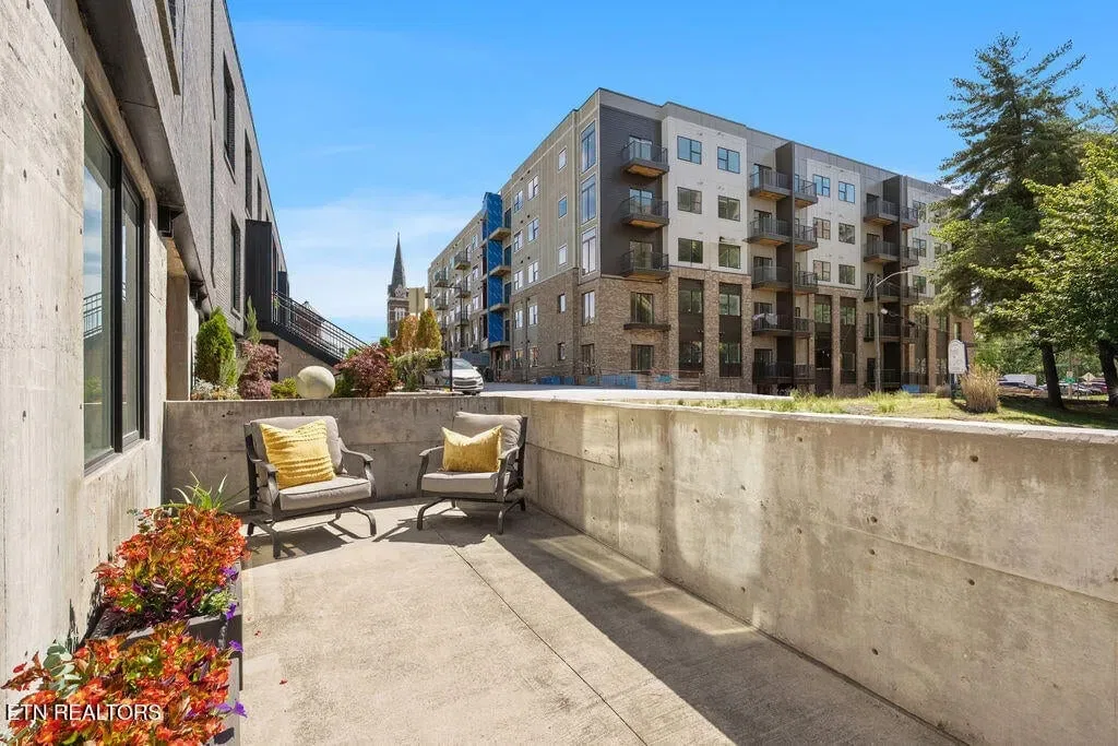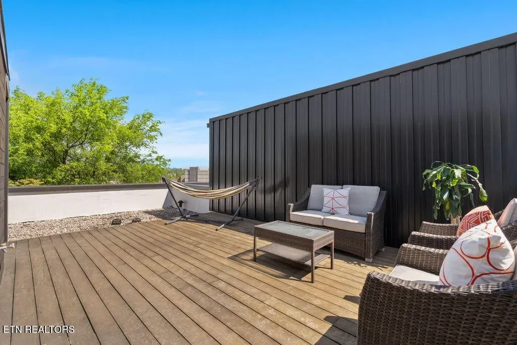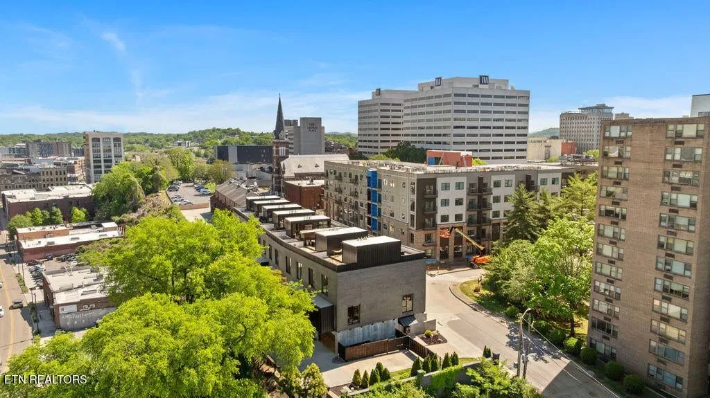 You must see it to truly appreciate this exceptional 4-bedroom, 3 ½ bath urban row home, complete with an attached 2-car garage, covered balcony perched in the treetops, welcoming front patio, and sprawling rooftop terrace overlooking the cityscape. Located in one of Downtown‘s newer developments known as “City House”, construction was completed in 2020. This thoughtfully designed light-filled corner residence features beautiful hardwood floors, soaring ceilings, expansive windows, and well-appointed finishes throughout. Be impressed by the sleek kitchen with its clean lines, modern fixtures, gas range and large pantry. A second spacious pantry, which could even be converted into a home office, is outfitted with a wine fridge and coffee bar. Two tankless gas water heaters, 3-zoned HVAC system, spacious walk-in closets, a separate laundry room, and extra storage in the garage, including an area that could double as a workshop or personal fitness space, add to the appeal of this special home. Conveniently situated between Knoxville‘s eclectic 100-Block & Old City and Downtown‘s thriving Theater District & Market Square, where you‘ll find many of the city‘s most popular restaurants, cafes, boutiques, entertainment venues, fitness studios & galleries. And with close proximity to the World‘s Fair Park & greenway system, Tennessee River, LMU and the University of Tennessee campuses, the new Covenant Health Park multi-use stadium and PetSafe dog park, it is easy to access all that vibrant Downtown Knoxville has to offer from this stunning City House. Approx. size per appraiser is an estimate only. Total approx. size of 4136sf includes approx. 3028sf interior and approx. 272sf front porch, approx. 224sf rooftop deck and approx. 160sf covered balcony and approx. 452sf garage. Buyer to verify size, taxes and HOA fees, which are subject to change. Short-Term Rentals / AirBnBs are not permitted.