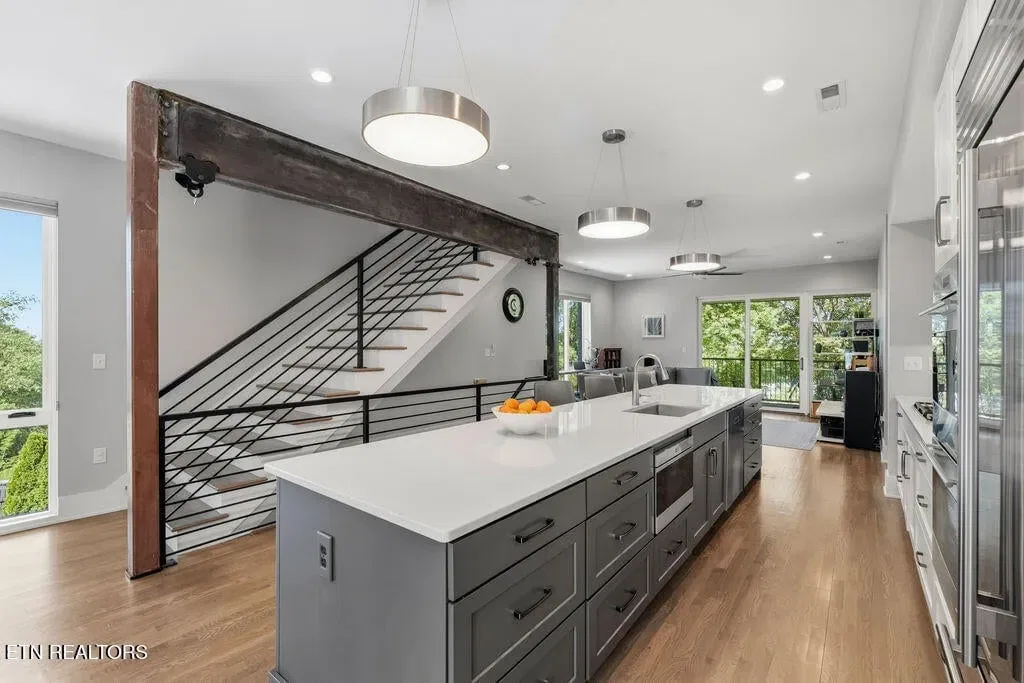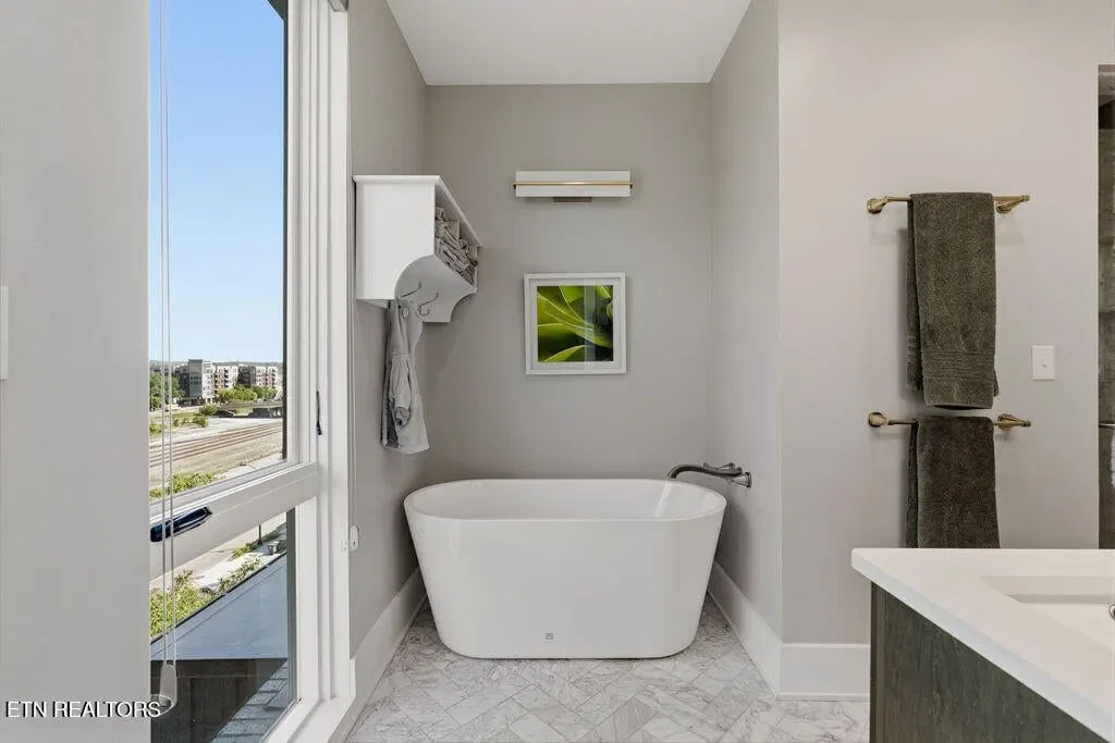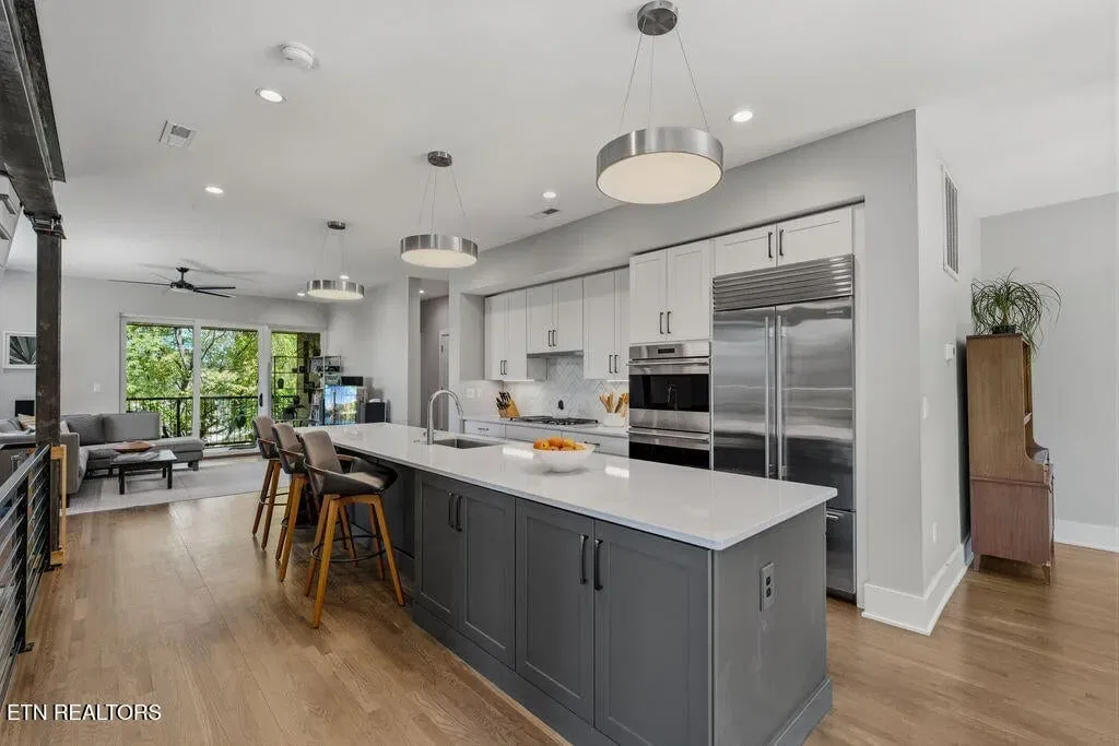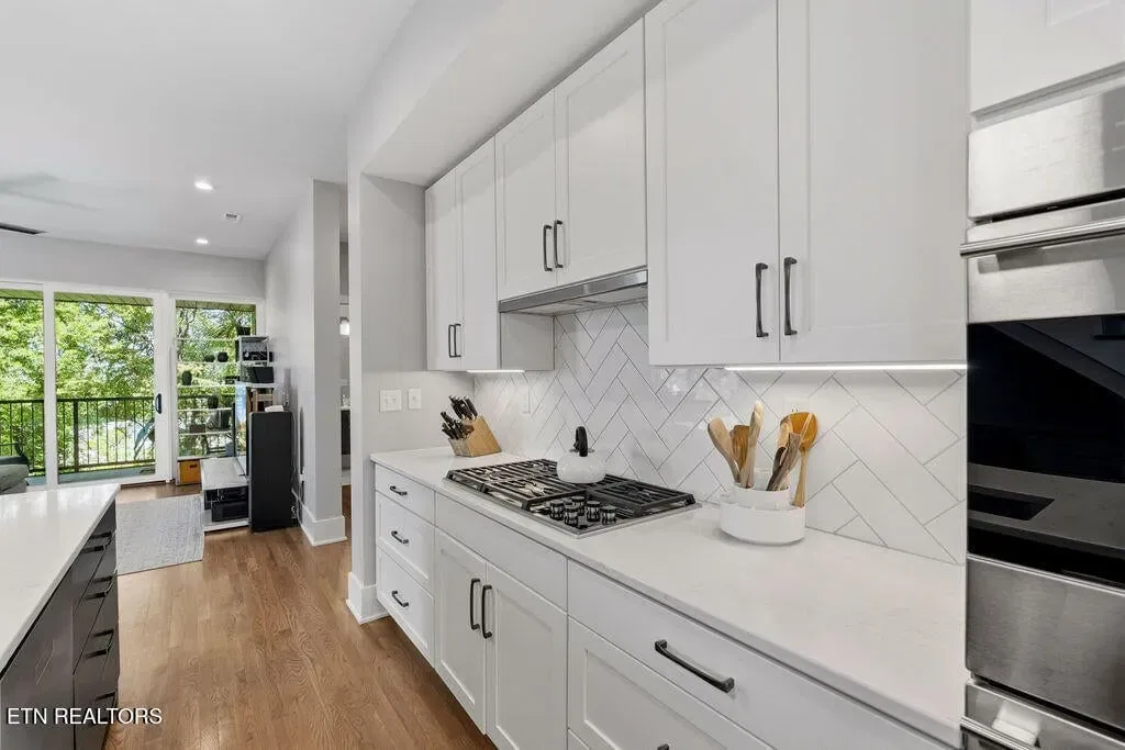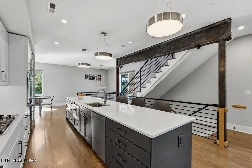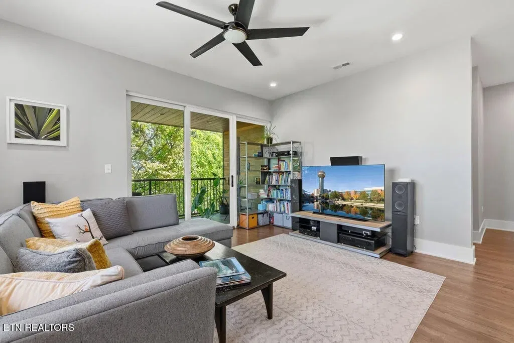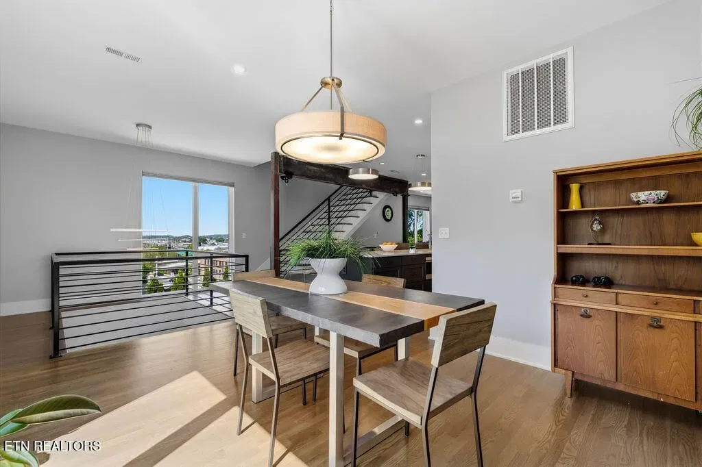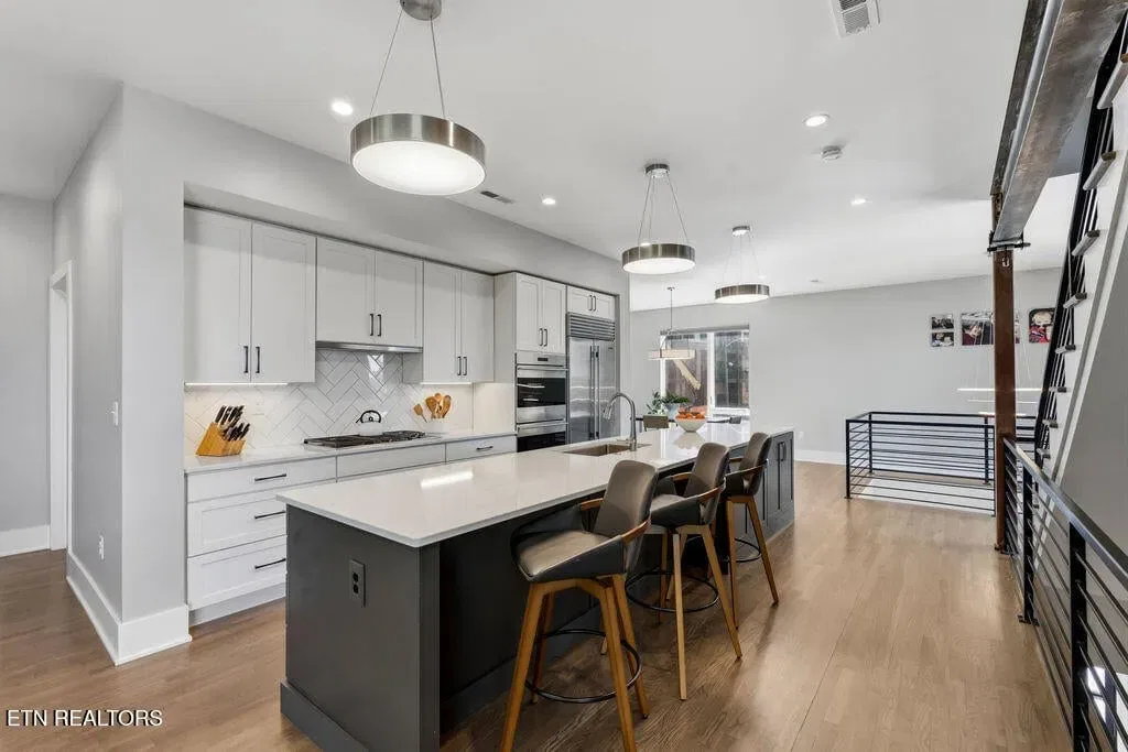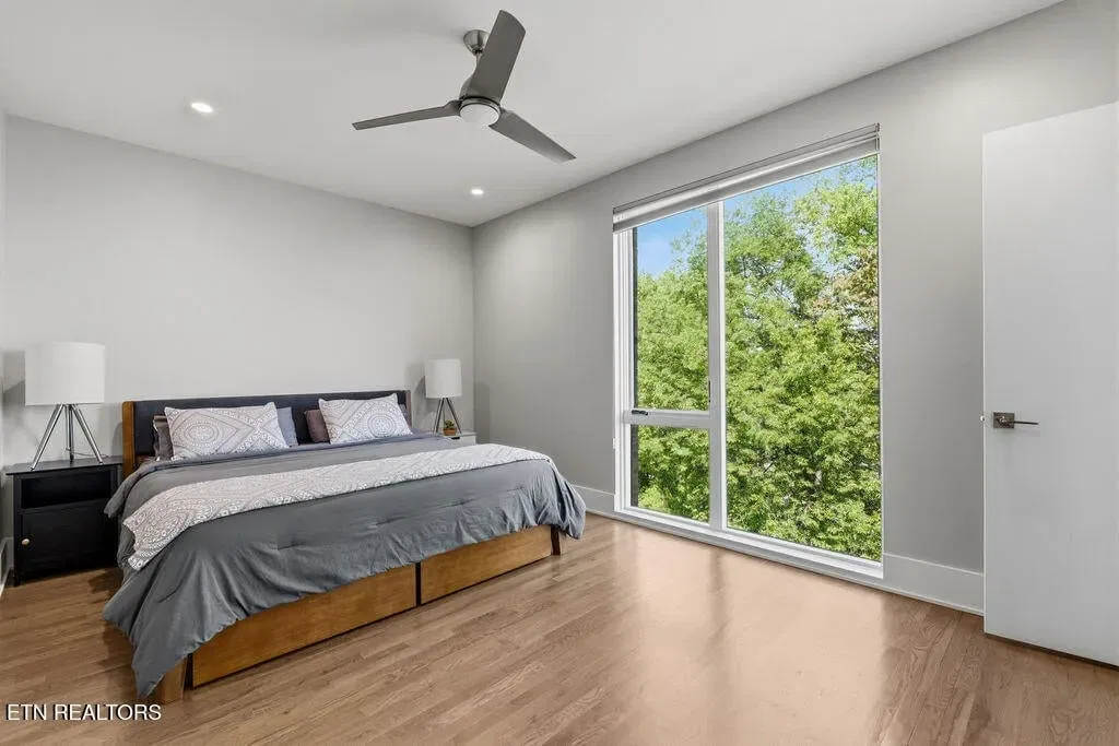 You must see it to truly appreciate this exceptional 4-bedroom, 3 ½ bath urban row home, complete with an attached 2-car garage, covered balcony perched in the treetops, welcoming front patio, and sprawling rooftop terrace overlooking the cityscape. Located in one of Downtown‘s newer developments known as “City House”, construction was completed in 2020. This thoughtfully designed light-filled corner residence features beautiful hardwood floors, soaring ceilings, expansive windows, and well-appointed finishes throughout. Be impressed by the sleek kitchen with its clean lines, modern fixtures, gas range and large pantry. A second spacious pantry, which could even be converted into a home office, is outfitted with a wine fridge and coffee bar. Two tankless gas water heaters, 3-zoned HVAC system, spacious walk-in closets, a separate laundry room, and extra storage in the garage, including an area that could double as a workshop or personal fitness space, add to the appeal of this special home. Conveniently situated between Knoxville‘s eclectic 100-Block & Old City and Downtown‘s thriving Theater District & Market Square, where you‘ll find many of the city‘s most popular restaurants, cafes, boutiques, entertainment venues, fitness studios & galleries. And with close proximity to the World‘s Fair Park & greenway system, Tennessee River, LMU and the University of Tennessee campuses, the new Covenant Health Park multi-use stadium and PetSafe dog park, it is easy to access all that vibrant Downtown Knoxville has to offer from this stunning City House. Approx. size per appraiser is an estimate only. Total approx. size of 4136sf includes approx. 3028sf interior and approx. 272sf front porch, approx. 224sf rooftop deck and approx. 160sf covered balcony and approx. 452sf garage. Buyer to verify size, taxes and HOA fees, which are subject to change. Short-Term Rentals / AirBnBs are not permitted.