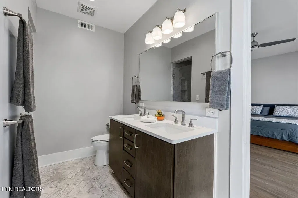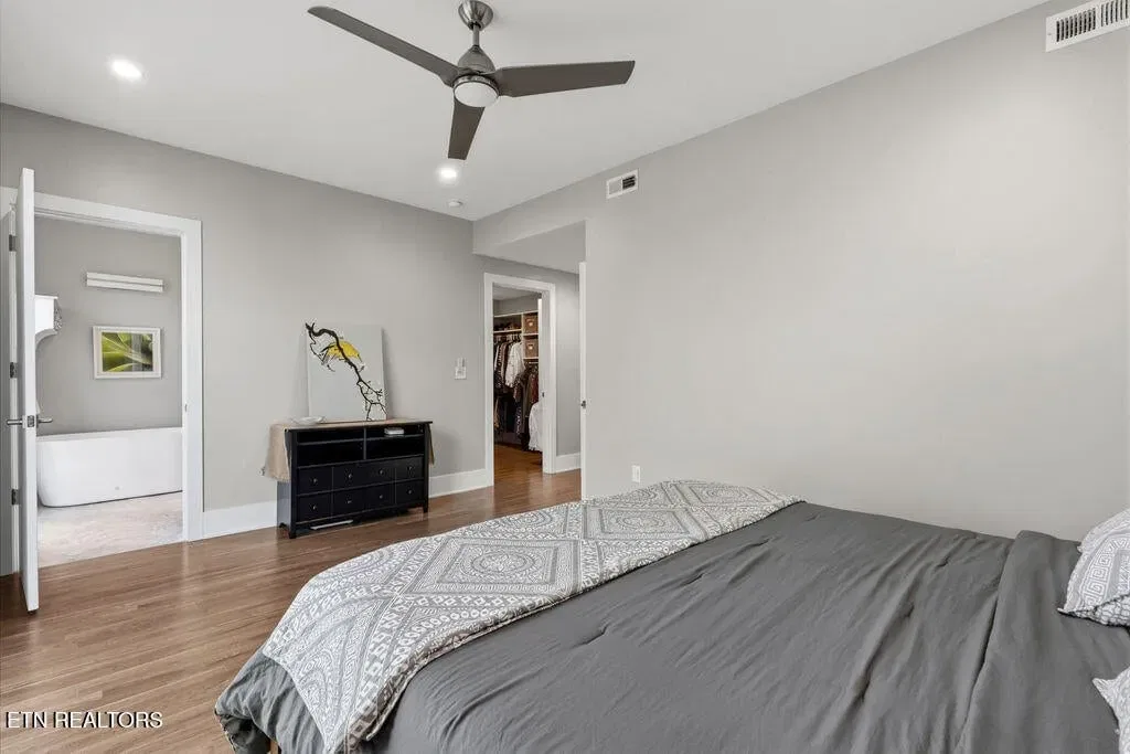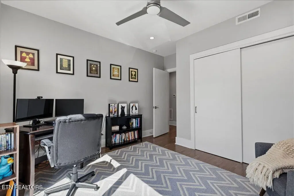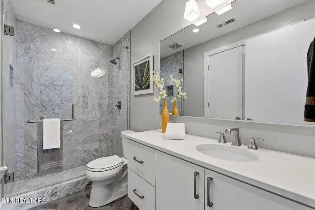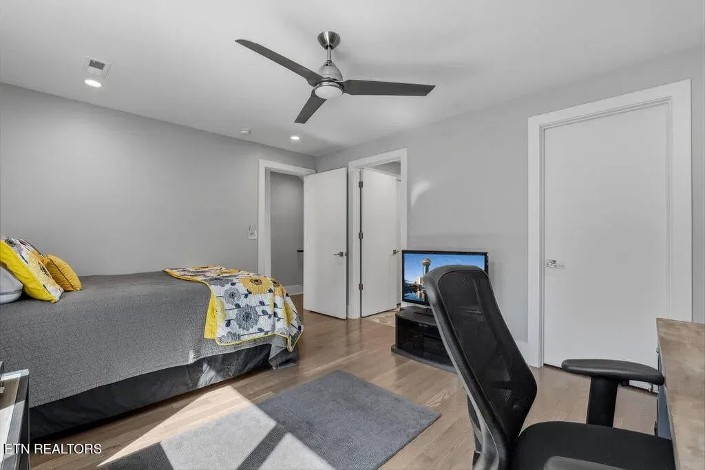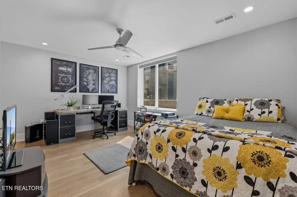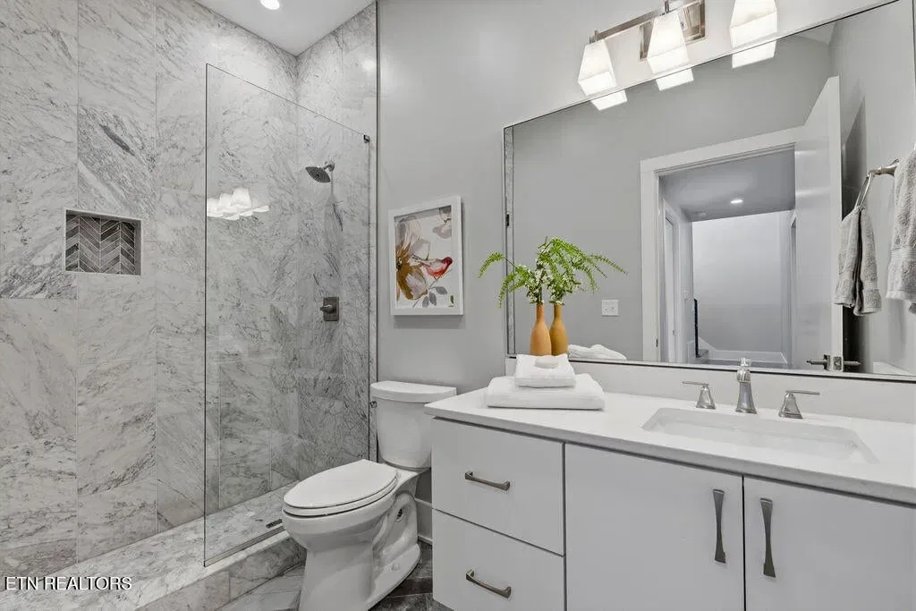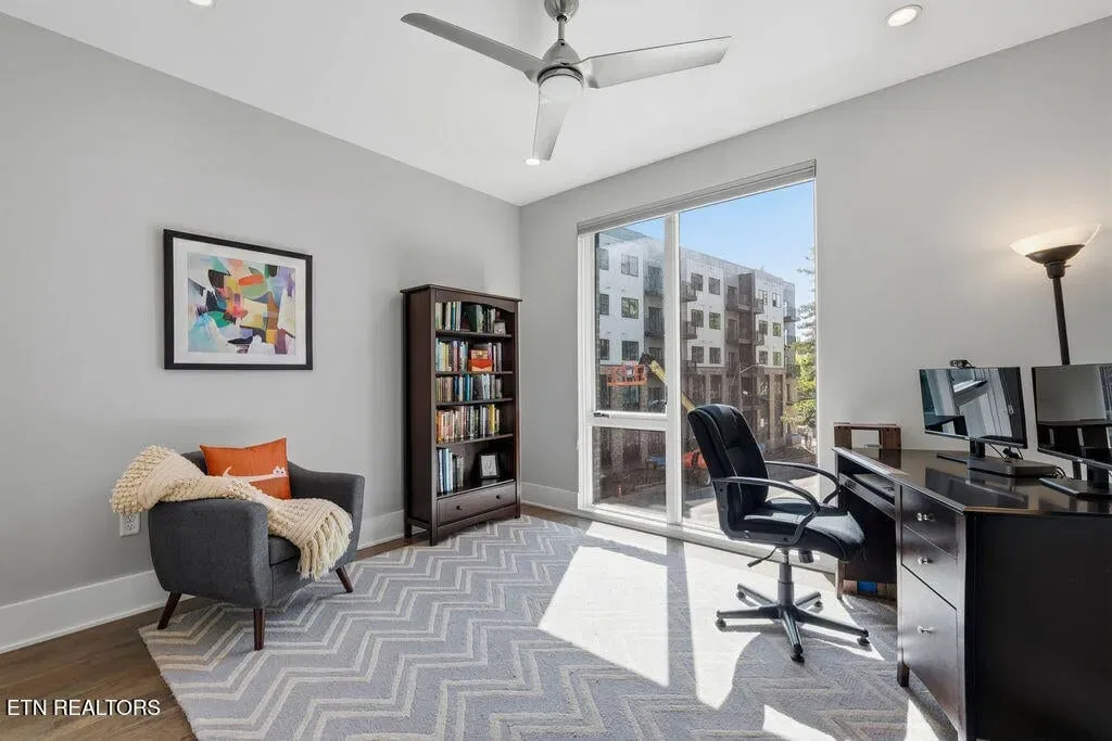 You must see it to truly appreciate this exceptional 4-bedroom, 3 ½ bath urban row home, complete with an attached 2-car garage, covered balcony perched in the treetops, welcoming front patio, and sprawling rooftop terrace overlooking the cityscape. Located in one of Downtown‘s newer developments known as “City House”, construction was completed in 2020. This thoughtfully designed light-filled corner residence features beautiful hardwood floors, soaring ceilings, expansive windows, and well-appointed finishes throughout. Be impressed by the sleek kitchen with its clean lines, modern fixtures, gas range and large pantry. A second spacious pantry, which could even be converted into a home office, is outfitted with a wine fridge and coffee bar. Two tankless gas water heaters, 3-zoned HVAC system, spacious walk-in closets, a separate laundry room, and extra storage in the garage, including an area that could double as a workshop or personal fitness space, add to the appeal of this special home. Conveniently situated between Knoxville‘s eclectic 100-Block & Old City and Downtown‘s thriving Theater District & Market Square, where you‘ll find many of the city‘s most popular restaurants, cafes, boutiques, entertainment venues, fitness studios & galleries. And with close proximity to the World‘s Fair Park & greenway system, Tennessee River, LMU and the University of Tennessee campuses, the new Covenant Health Park multi-use stadium and PetSafe dog park, it is easy to access all that vibrant Downtown Knoxville has to offer from this stunning City House. Approx. size per appraiser is an estimate only. Total approx. size of 4136sf includes approx. 3028sf interior and approx. 272sf front porch, approx. 224sf rooftop deck and approx. 160sf covered balcony and approx. 452sf garage. Buyer to verify size, taxes and HOA fees, which are subject to change. Short-Term Rentals / AirBnBs are not permitted.