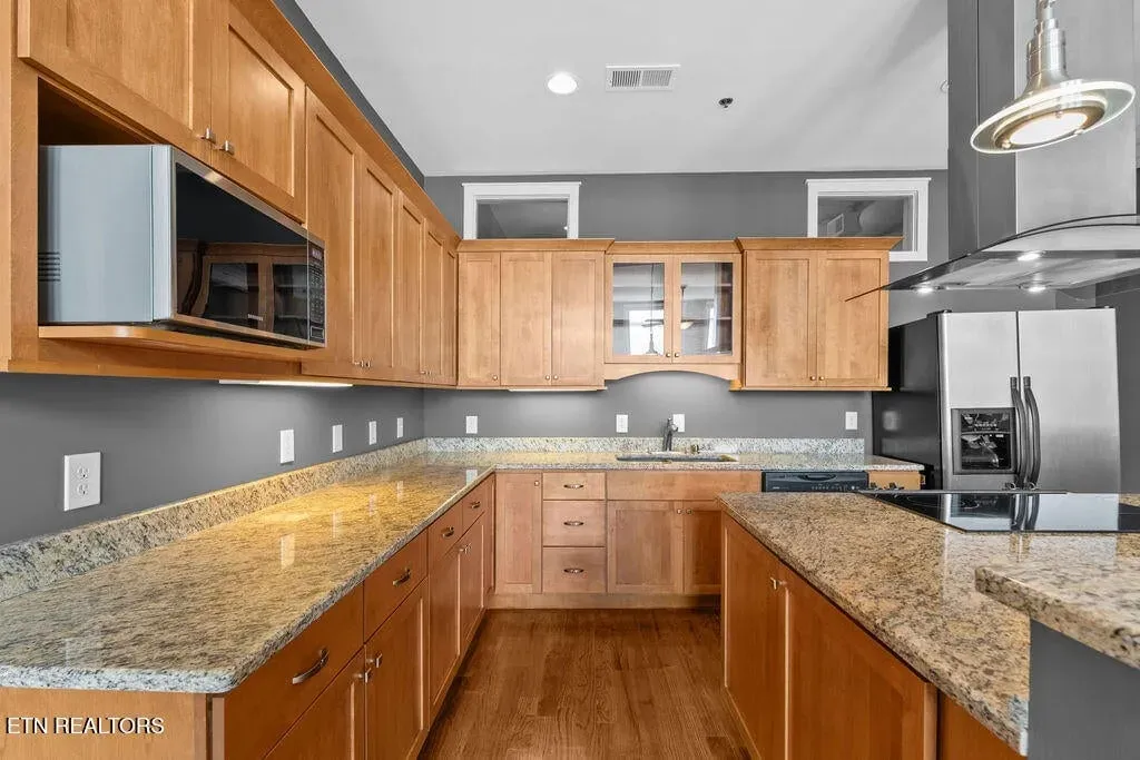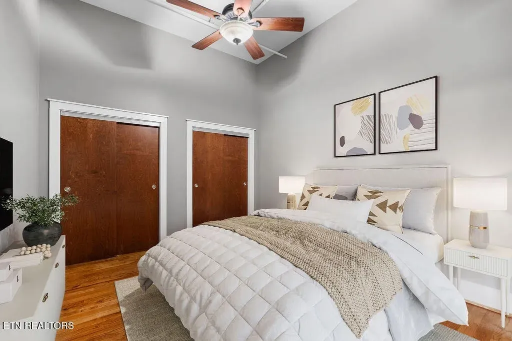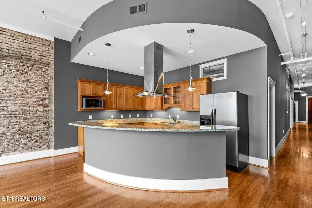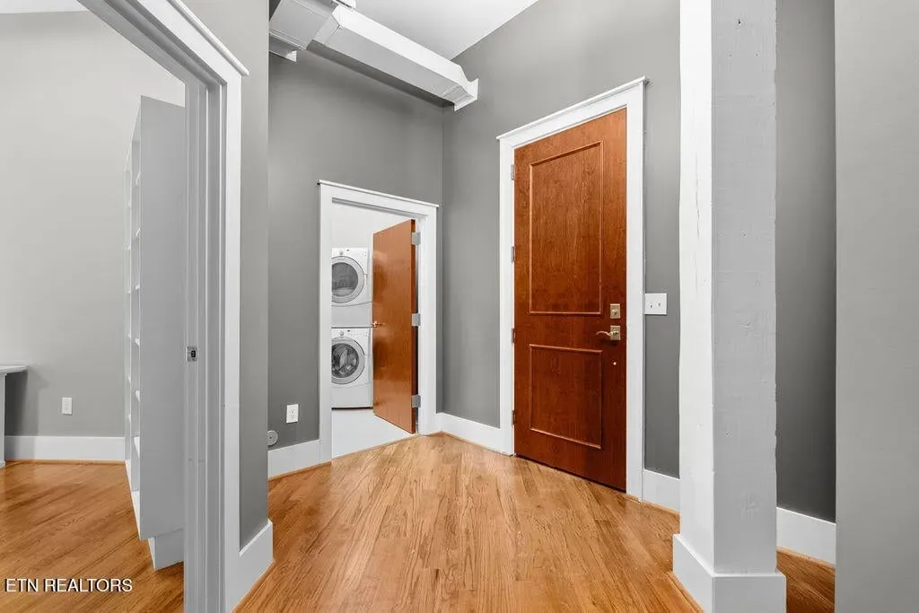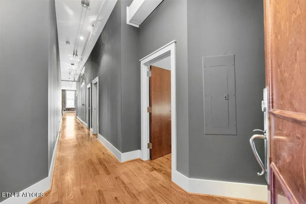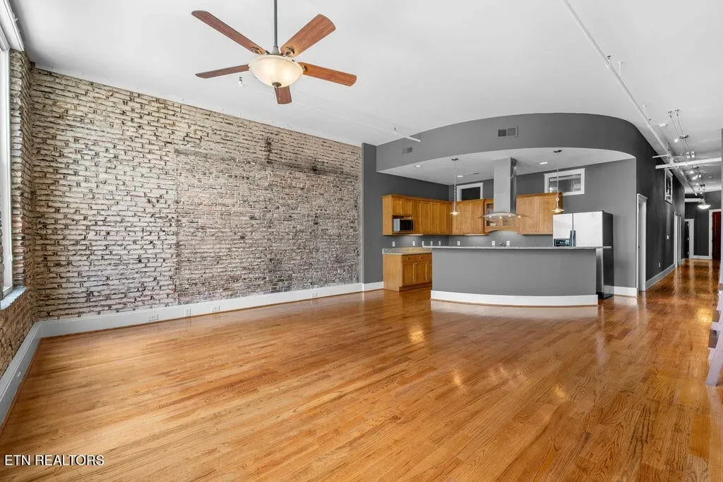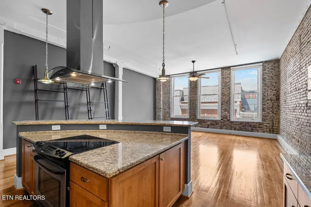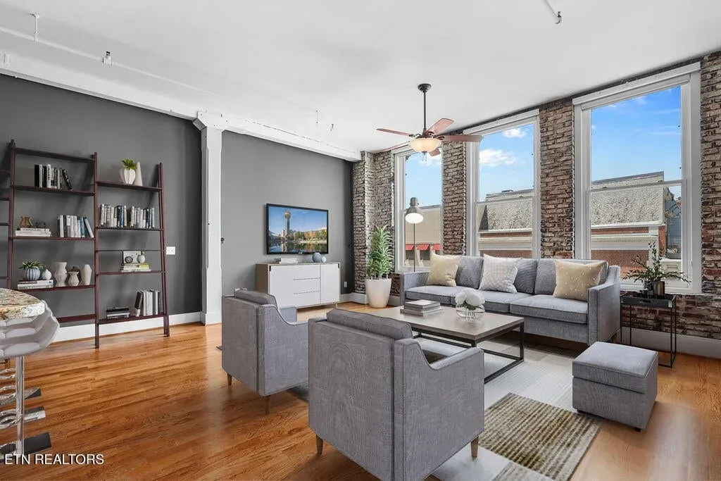 You must see it to truly appreciate this stunning urban loft overlooking Downtown’s vibrant Gay Street. Located in the premier Gallery Lofts, just steps from Market Square, the Old City and the Theater District, this exceptional residence features an expansive great room with huge windows, two bedrooms, two baths and a separate study. The original exposed brick, rough-hewn timbers and soaring ceilings evoke the building’s industrial past, while the contemporary finishes and fixtures inspire a sense of relaxed, modern elegance. Thoughtfully designed with both style and function in mind, you will find abundant kitchen storage and generous custom-designed closets. Updates include fresh paint throughout (2024), new hardwood floors in the master bedroom (2019), custom cherry vanities with granite tops, and REME HALO Whole Home In-Duct Air Purifier (hospital grade), HVAC Carrier compressor on roof (2017), & extra-capacity water heater (2010). Washer/Dryer and Pottery Barn office furniture included. In addition to the 13 residences, there are commercial spaces on the first and second floors of the building including the beloved Mast General Store and prominent architecture firm DIA. Stroll outside and enjoy many of the city’s most popular restaurants, cafes, entertainment venues, fitness studios & galleries. And with close proximity to the new Covenant Health Park stadium, library, artsy Emory Place, Downtown North, PetSafe dog park, World’s Fair Park, greenway system, the University of Tennessee, and the South Waterfront, you can easily access it all from your home in the Gallery Lofts. Approx. size per appraiser is an estimate only and is not guaranteed. Developer’s 1725sf estimate and CRS measurements of 1917sf vary. Buyer to verify size, taxes and HOA fees, which are subject to change. CRS records state the building was constructed in 1910, however historians date the building to the 1880’s. The building was redeveloped in 2007 and roof was replaced in 2023. Public parking is offered directly behind the building in the attached Promenade Garage, or in the nearby State St. Garage where night/weekend parking is free and Downtown residents are offered reduced monthly parking rates of approx. $45/month; subject to availability.