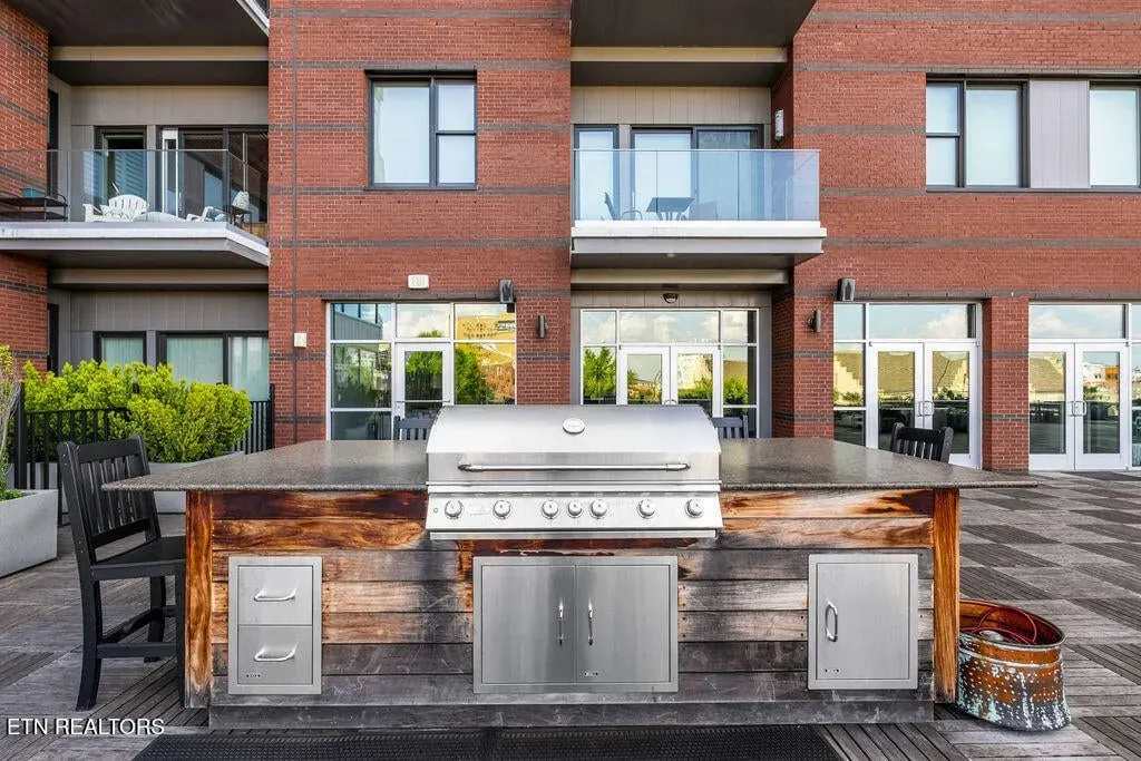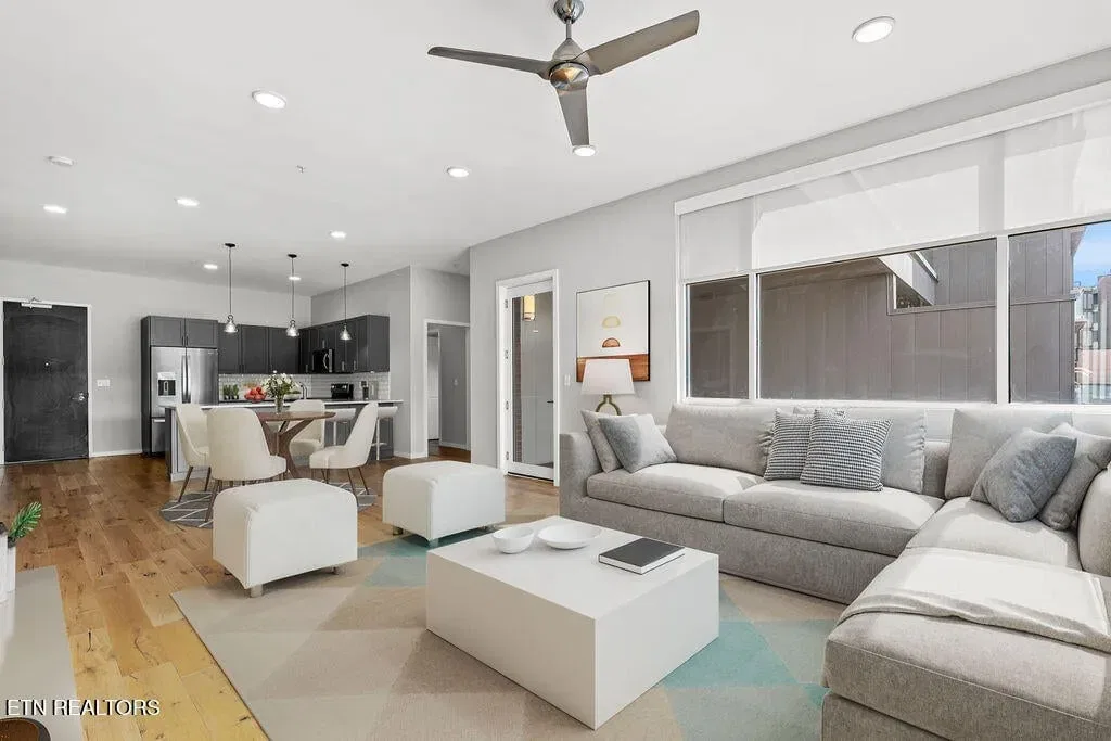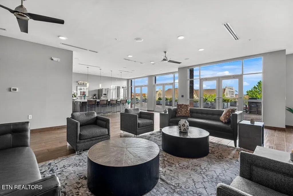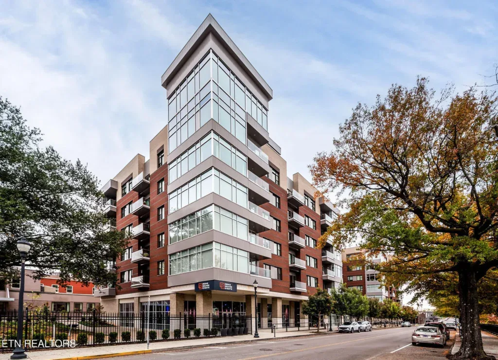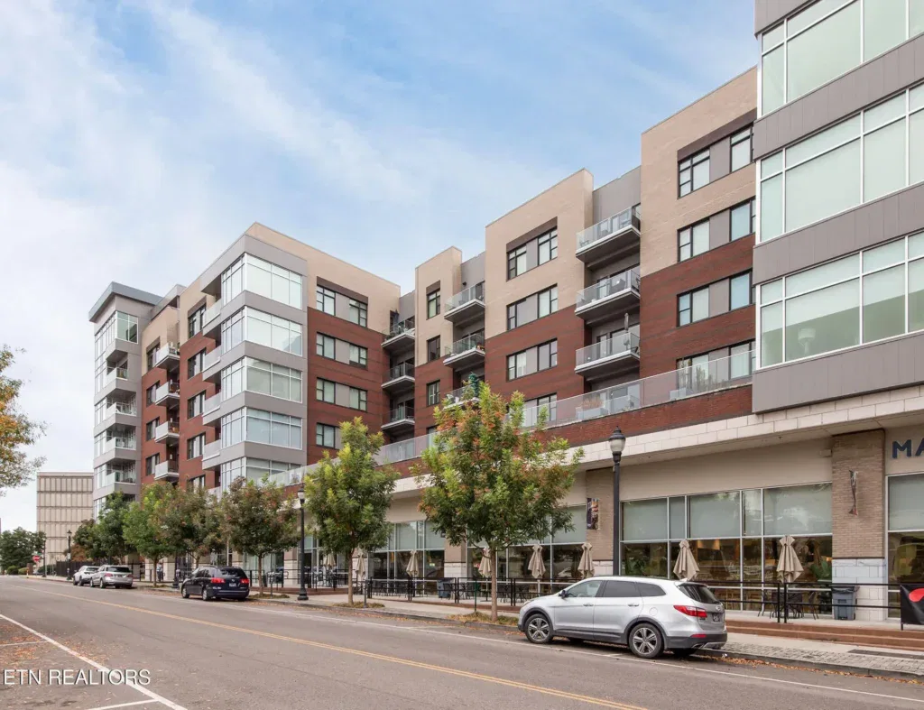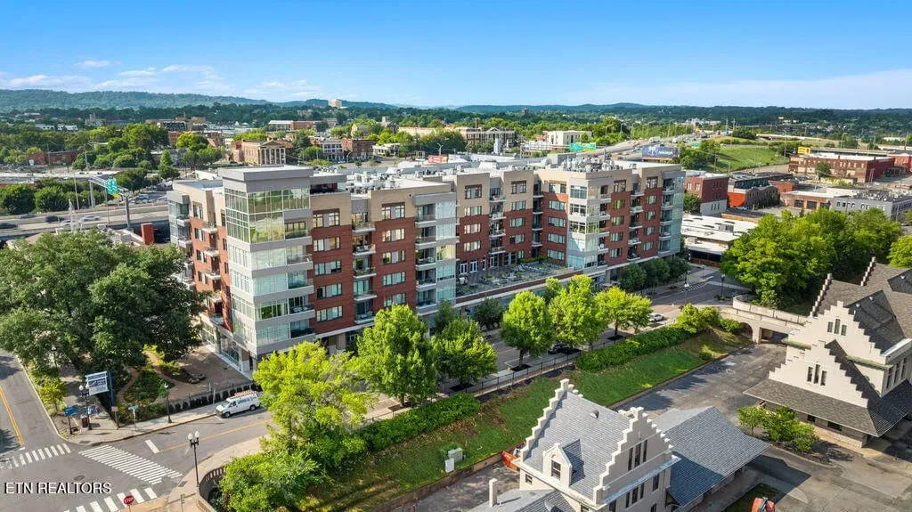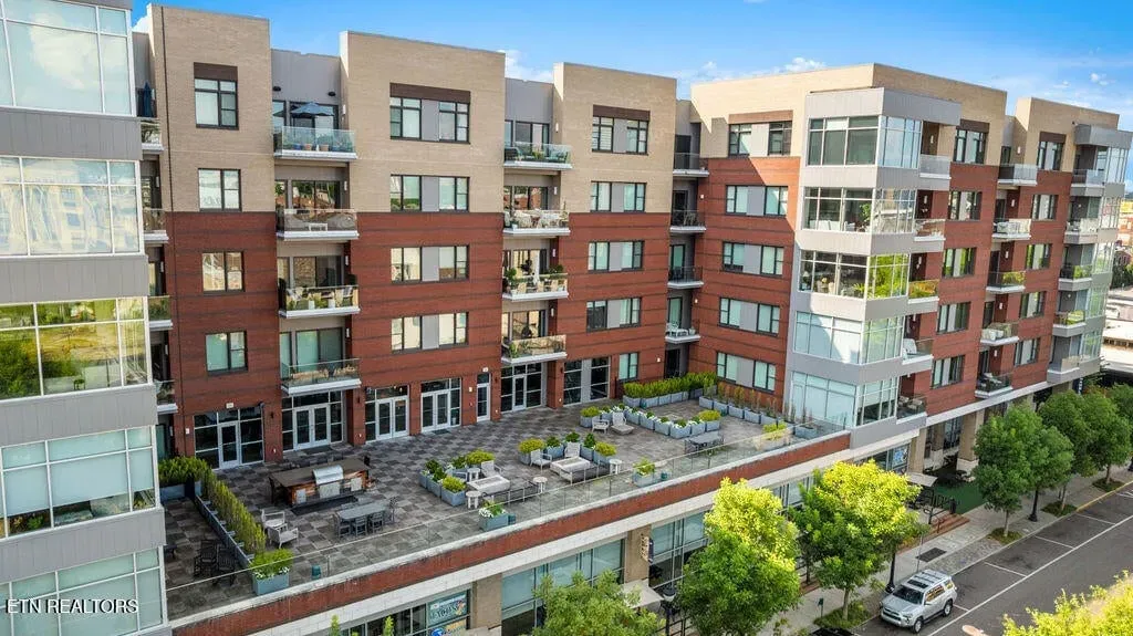 Live in one of the most dynamic areas in Downtown Knoxville. Situated just blocks from the hip restaurants, cafes, entertainment venues & galleries of the vibrant Old City, Gay Street’s Theater District and bustling 100-Block, Market Square & eclectic Downtown North, and just minutes from the new Covenant Park Stadium, Neyland Stadium & Thompson-Boling Arena, UT & Ft. Sanders Hospitals, Regas Square is 6-story luxury mid-rise encompassing 101 residences and an attached food hall and event venue. Completed in 2019, Regas Square offers unparalleled amenities, including a state-of-the-art fitness center, club room and social areas, an expansive rooftop terrace with gas grills, and gated parking garage. This stunning 2br/2ba residence features a spacious great room with a sprawling aprx. 314sf terrace (one of the largest in the development), expansive windows, beautiful hardwood flooring, an open kitchen with sleek cabinetry & central island, large custom walk-in closets, tastefully appointed baths and modern fixtures. Individual storage unit and 2 assigned tandem garage parking spaces are included. *Aprx. size of 1,525sf is based on CRS estimate. Developer’s architectural plans show aprx. 314sf terrace and aprx. 1524 interior. Buyer to verify size, taxes and HOA fees, which are subject to change. Please note that HOA dues are paid biannually rather than monthly. HOA Transfer Fee to Buyer at Closing is 10% of the annual dues.