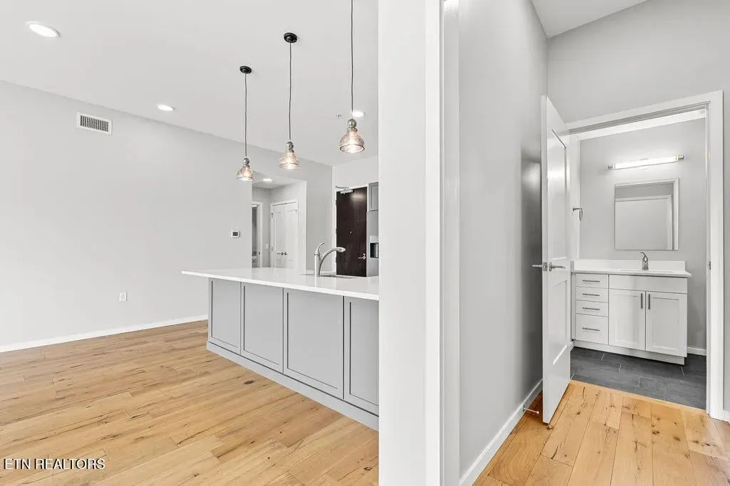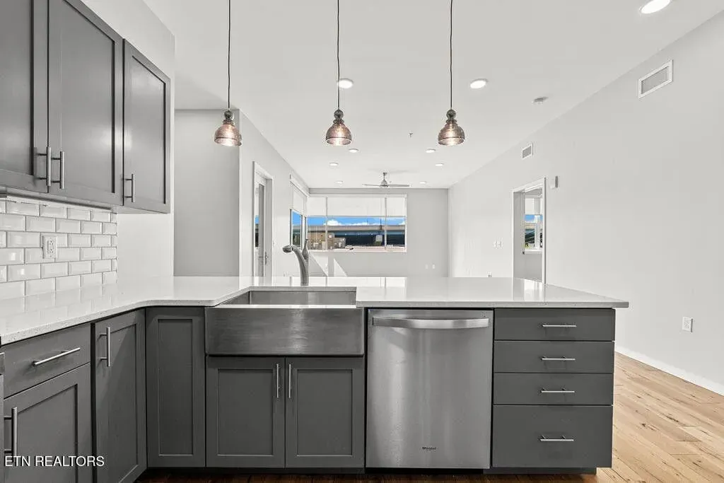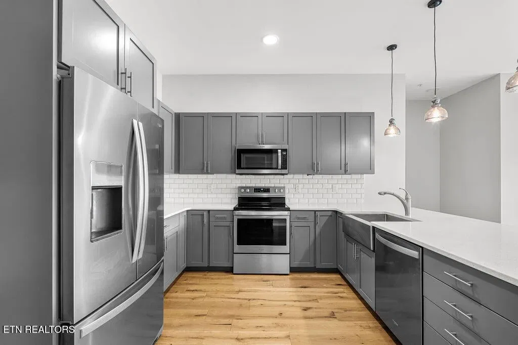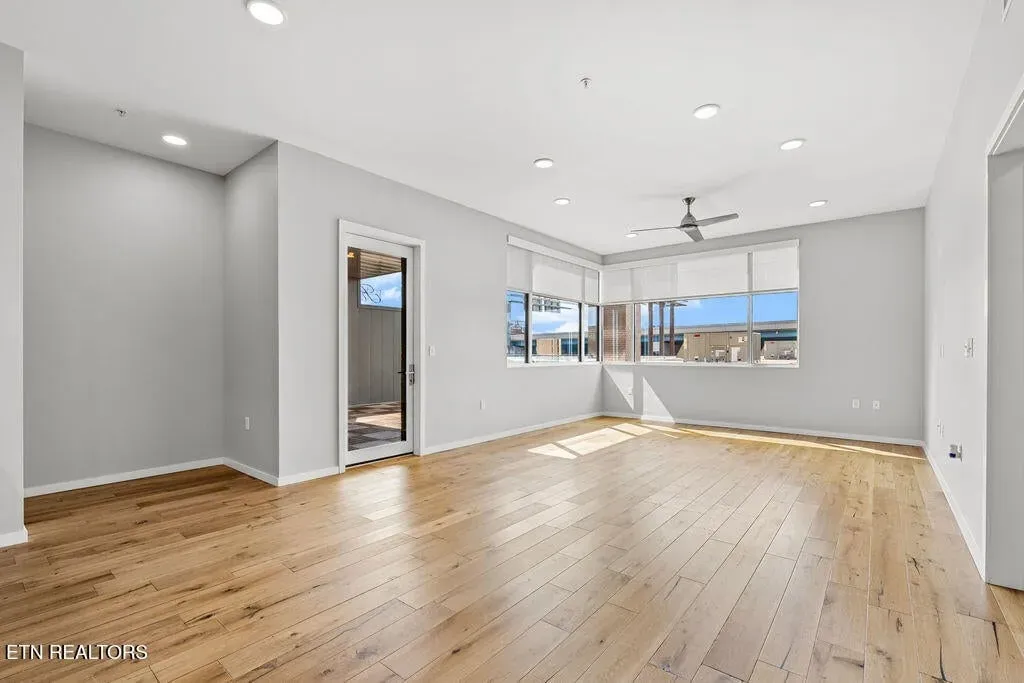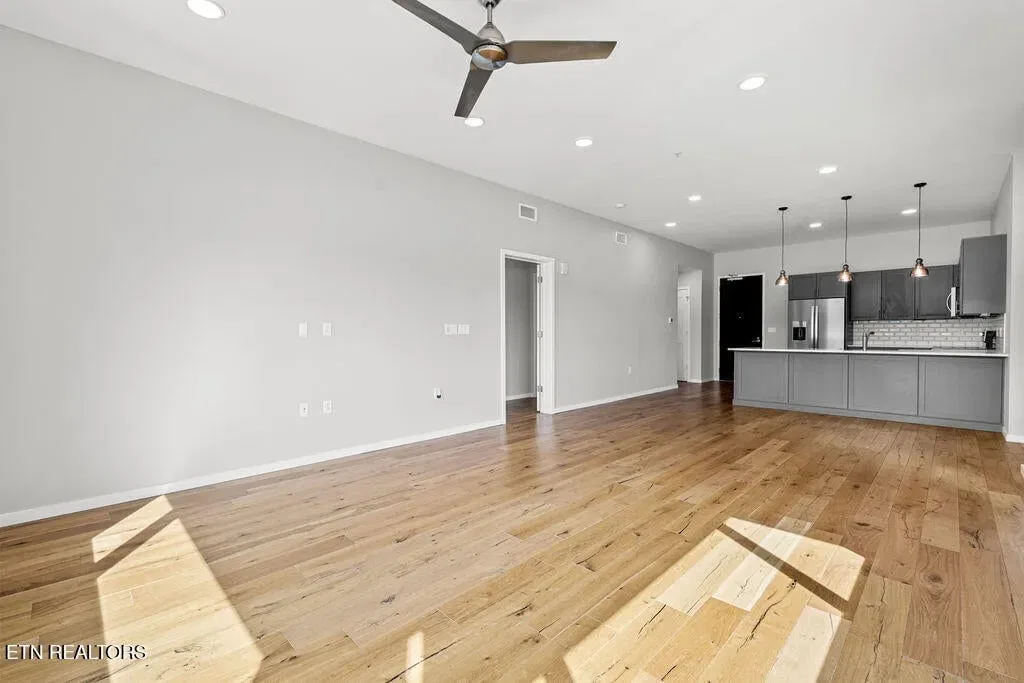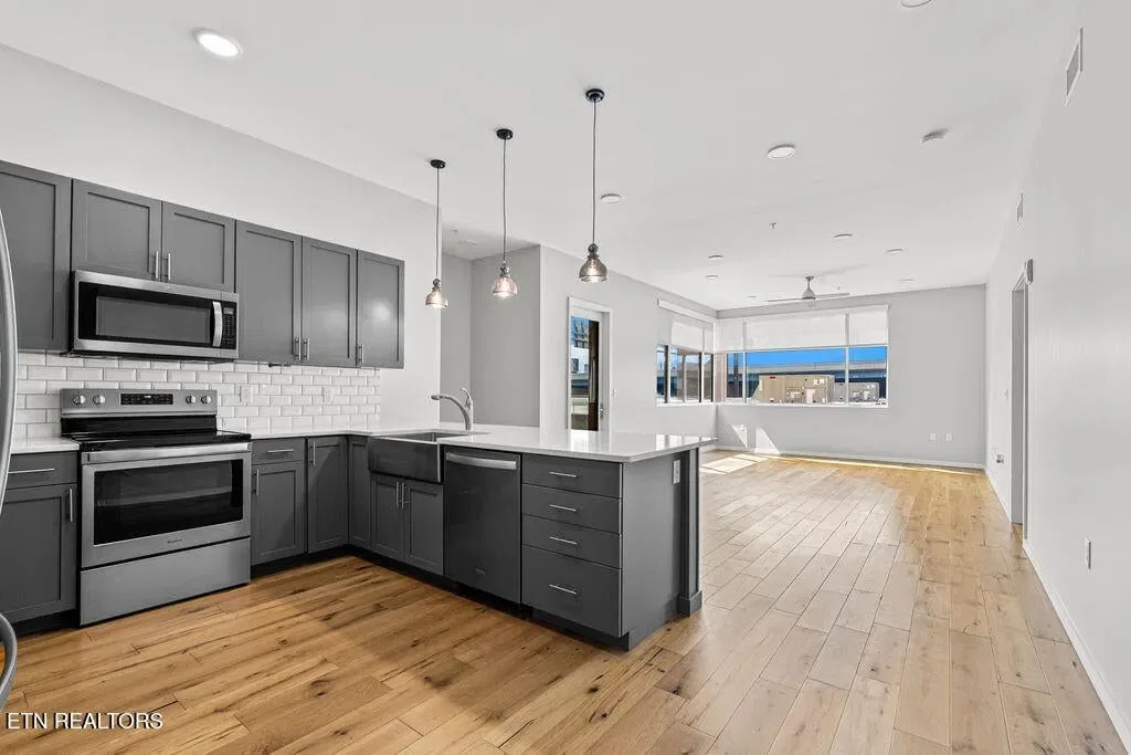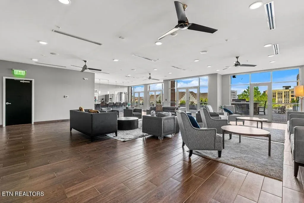 Live in one of the most dynamic areas in Downtown Knoxville. Situated just blocks from the hip restaurants, cafes, entertainment venues & galleries of the vibrant Old City, Gay Street’s Theater District and bustling 100-Block, Market Square & eclectic Downtown North, and just minutes from the new Covenant Park Stadium, Neyland Stadium & Thompson-Boling Arena, UT & Ft. Sanders Hospitals, Regas Square is 6-story luxury mid-rise encompassing 101 residences and an attached food hall and event venue. Completed in 2019, Regas Square offers unparalleled amenities, including a state-of-the-art fitness center, club room and social areas, an expansive rooftop terrace with gas grills, and gated parking garage. This stunning 2br/2ba residence features a spacious great room with a sprawling aprx. 314sf terrace (one of the largest in the development), expansive windows, beautiful hardwood flooring, an open kitchen with sleek cabinetry & central island, large custom walk-in closets, tastefully appointed baths and modern fixtures. Individual storage unit and 2 assigned tandem garage parking spaces are included. *Aprx. size of 1,525sf is based on CRS estimate. Developer’s architectural plans show aprx. 314sf terrace and aprx. 1524 interior. Buyer to verify size, taxes and HOA fees, which are subject to change. Please note that HOA dues are paid biannually rather than monthly. HOA Transfer Fee to Buyer at Closing is 10% of the annual dues.