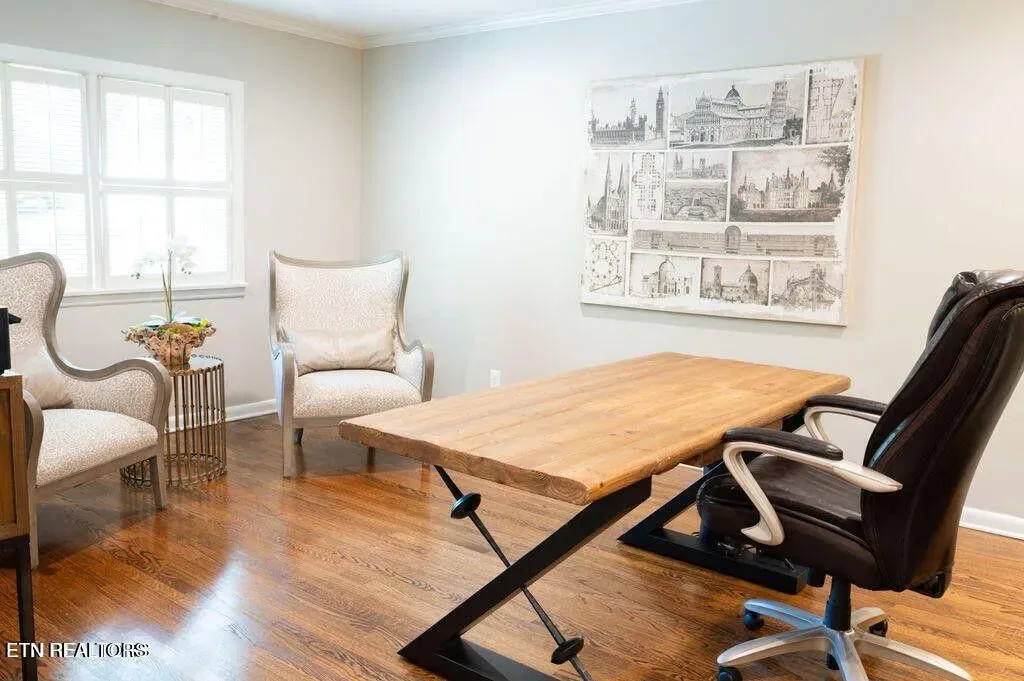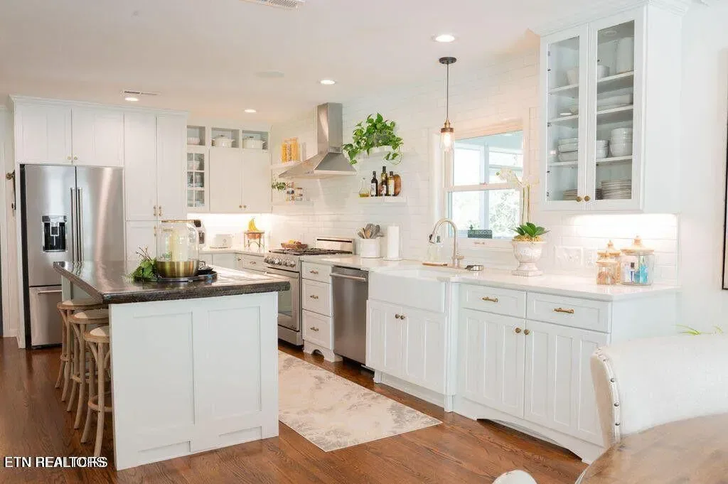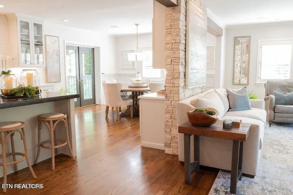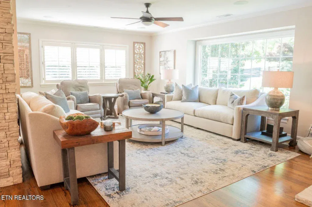 Nestled in the heart of picturesque Sequoyah Hills with easy access to the trails along Cherokee Boulevard, Sequoyah Park, and Knoxville’s extensive greenway system, and just minutes from Downtown and the University of Tennessee, this beautifully updated home exudes warmth, character, and relaxed elegance. While originally constructed in 1955, this home has been impressively renovated with both style and function in mind. The gourmet kitchen, with its large central island and gas cooktop flows seamlessly into inviting dining and living areas, complete with a gas fireplace and expansive picture window. The spa-inspired main suite impresses with marble accents, a luxurious soaking tub, and a generous walk-in closet. Also located on the main level is a sunny guest bedroom, guest bath, study and sprawling screened porch. The lower terrace level extends the home’s spacious feel, featuring a second kitchen with dining area, a living area with a brick fireplace, laundry room, two additional bedrooms and baths, along with a flexible bonus room that could serve as a fifth bedroom, fitness area, or craft room. Step outside to a tranquil, park-like setting complete with a covered patio and fire pit, all surrounded by lush greenery and mature trees. Recent updates over the past year include fresh paint inside, custom closets and window treatments, resurfaced circular driveway, new deck support system, enhanced exterior lighting and professional landscaping, and new exterior doors. The detached two-car garage, which is outfitted with EV chargers, has been impressively renovated with the addition of an HVAC system, new insulation, and new garage doors. Approx. size per Courthouse Retrieval System is an estimate only and is not guaranteed. Buyer to verify size and taxes, which are subject to change.